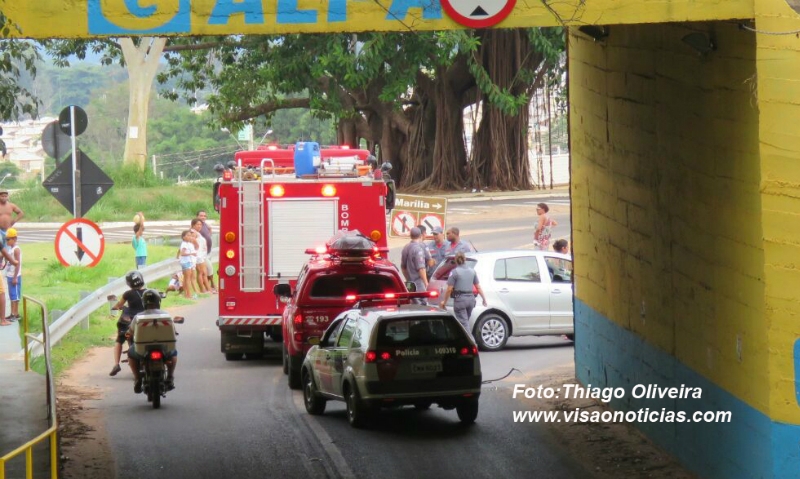 Um acidente na tarde deste domingo, no pontilhão do distrito de Padre Nóbrega, em Marília, mobilizou equipes de emergência do Corpo de Bombeiros e também do