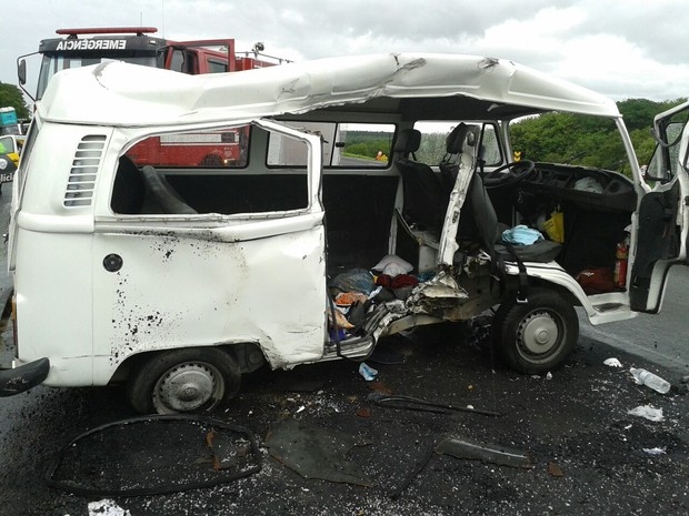 O motorista tentou desviar, mas teve a lateral do veículo arrancada durante o impacto. Na colisão, uma criança foi arremessada na pista e ficou embaixo da Kombi, presa às ferragens. Ela foi socorrida com fraturas.