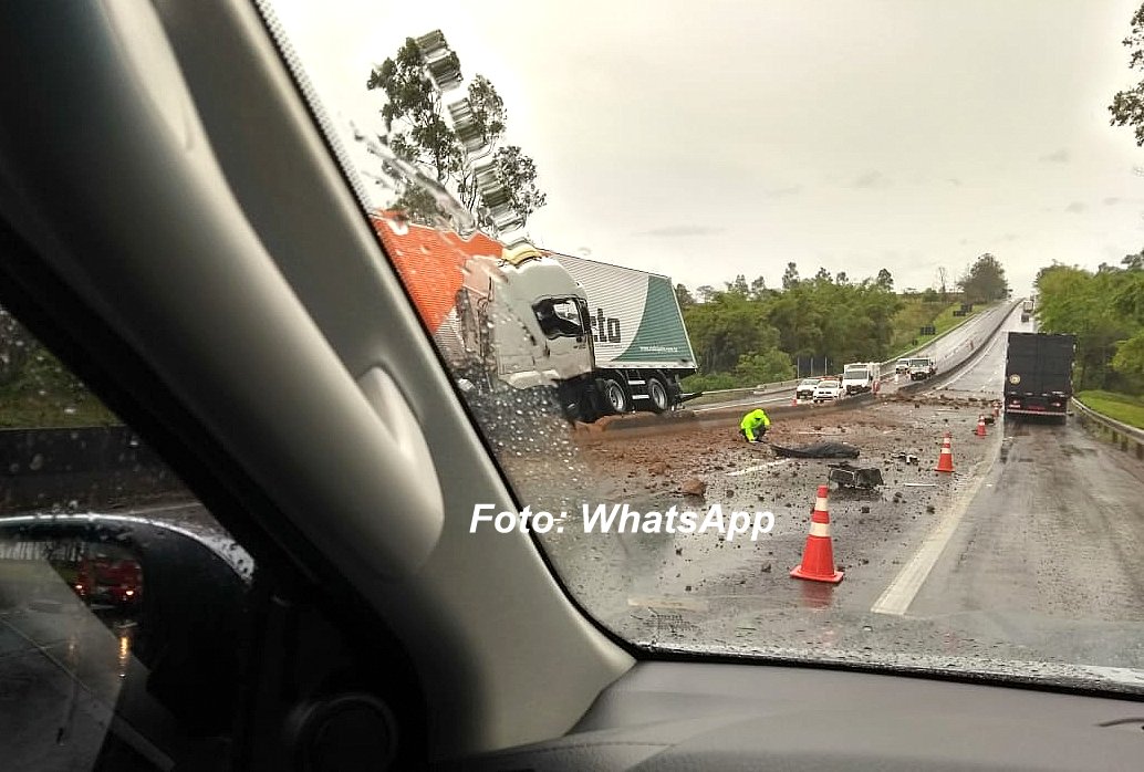 Chovia muito na hora do acidente e a polícia investiga se o caminhoneiro não estaria usando cinto de segurança. O veículo ainda permanece no local (altura do km 300), mas a rodovia não está interditada porque no trecho são quatro pistas.
