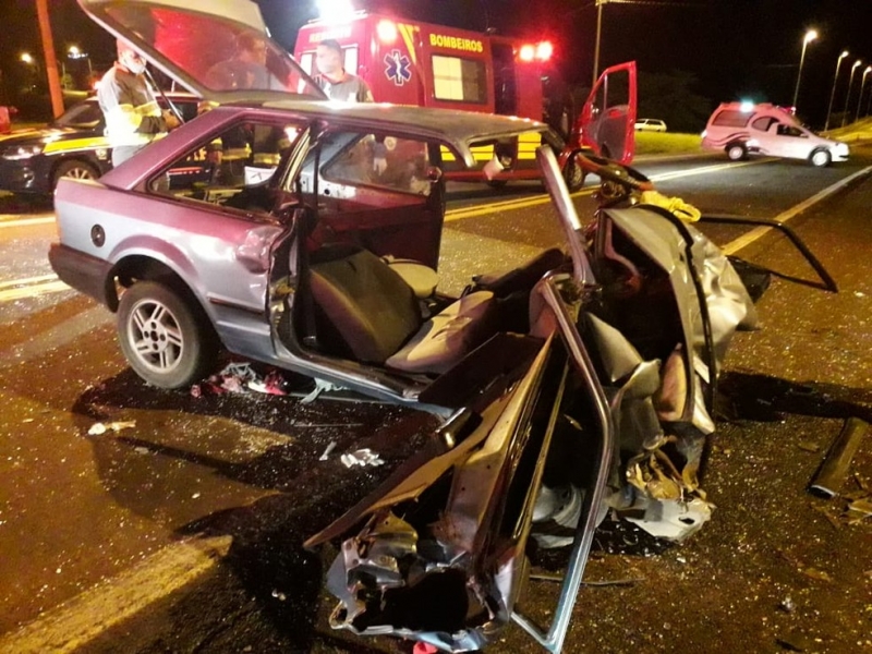 Um motorista ficou gravemente ferido após bater em uma caminhonete na noite de segunda-feira (2) na Rodovia BR-153, no trevo de acesso a cidade de Guaimbê.