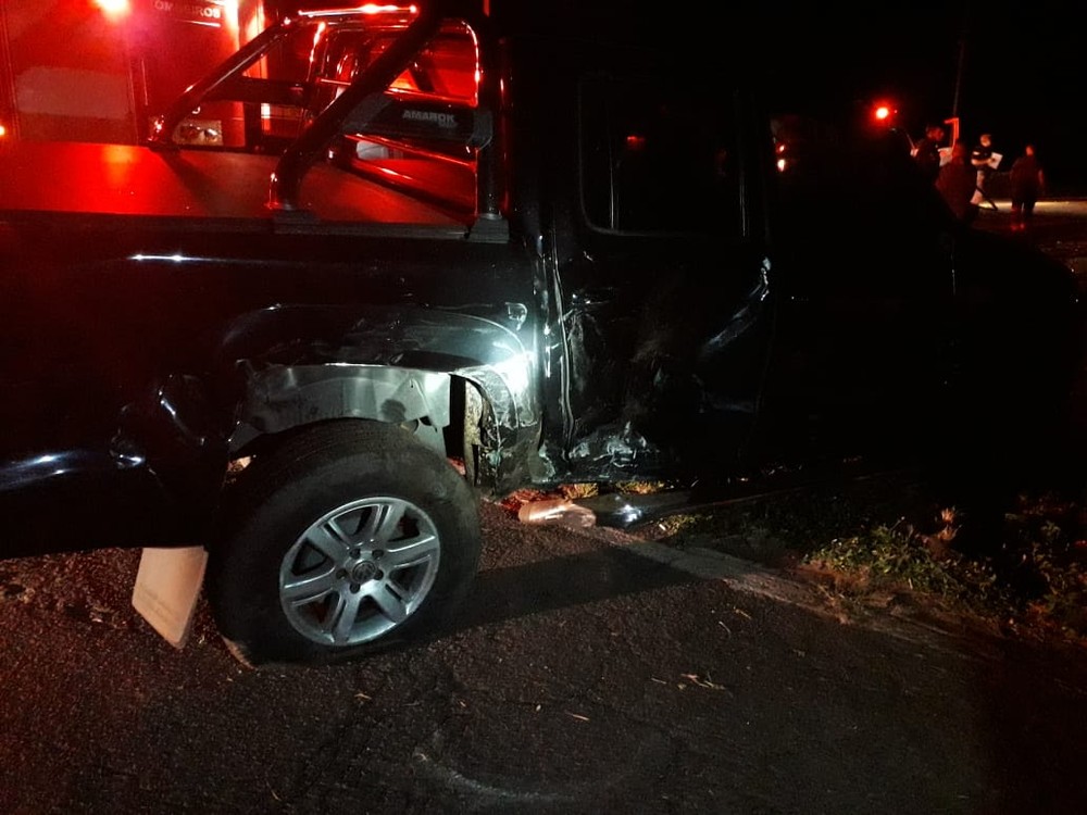 De acordo com a Polícia Rodoviária Federal, o carro bateu na transversal da caminhonete por volta das 21h.