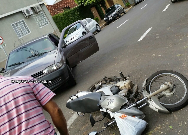 Um acidente envolvendo carro e moto foi registrado na manhã desta quarta-feira, 9, no cruzamento da rua Amazonas com a avenida Rio Claro, próximo ao centro de Marília.