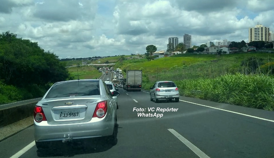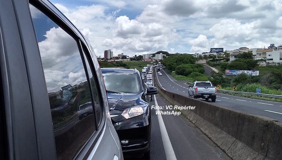 Congestionamento causado pelo acxidente na rodovia do Contorno.