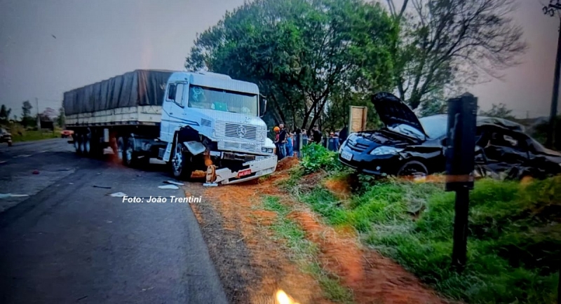 Uma pessoa morreu e outra ficou ferida em um grave acidente neste domingo em Bastos (região de Tupã), envolvendo um carro e uma carreta. O condutor do automóvel acabou morrendo e a passageira (sua esposa) sofreu ferimentos e está internada.
