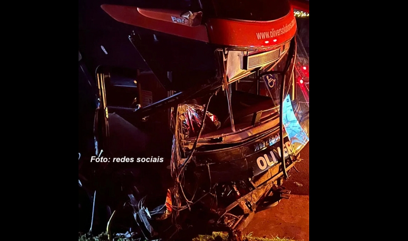 Vítima viajava ao lado do condutor do ônibus. Caminhoneiro ficou gravemente ferido