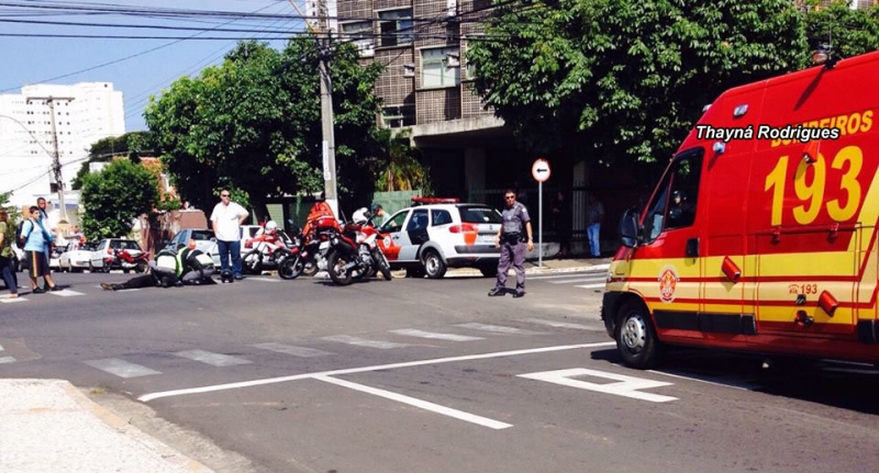 Um acidente envolvendo um carro e uma moto foi registrado há pouco no cruzamento das ruas Álvares Cabral com Carlos Gomes, no centro de Marília.