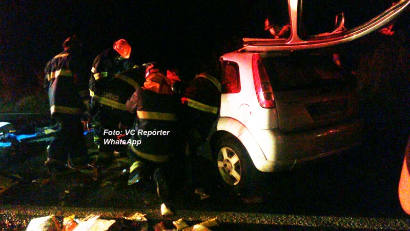 Com o violento impacto, um homem (passageiro da caminhonete) e a esposa do condutor do Fiesta morreram no local, presos nas ferragens. Equipes do Corpo de Bombeiros foram mobilizadas para retirar os ocupantes dos veículos das ferragens.