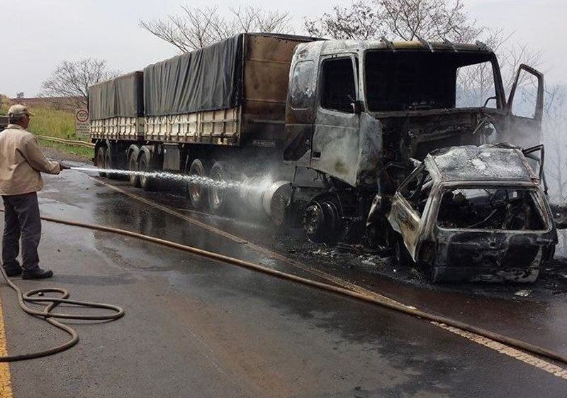 Neste momento ocorreu a colisão de frente com uma carreta que vinha em sentido contrário. O motorista do caminhão quando percebeu que o carro pegou fogo após a colisão, conseguiu sair do veículo rapidamente, sem sofrer ferimentos. O condutor do carro ficou preso nas ferragens e acabou morrendo carbonizado.