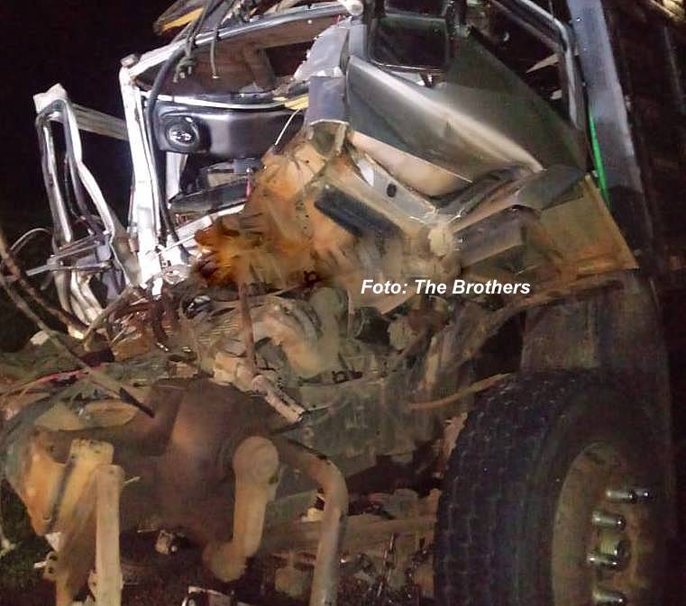 Com o impacto, a cabine do caminhão ficou destruída.