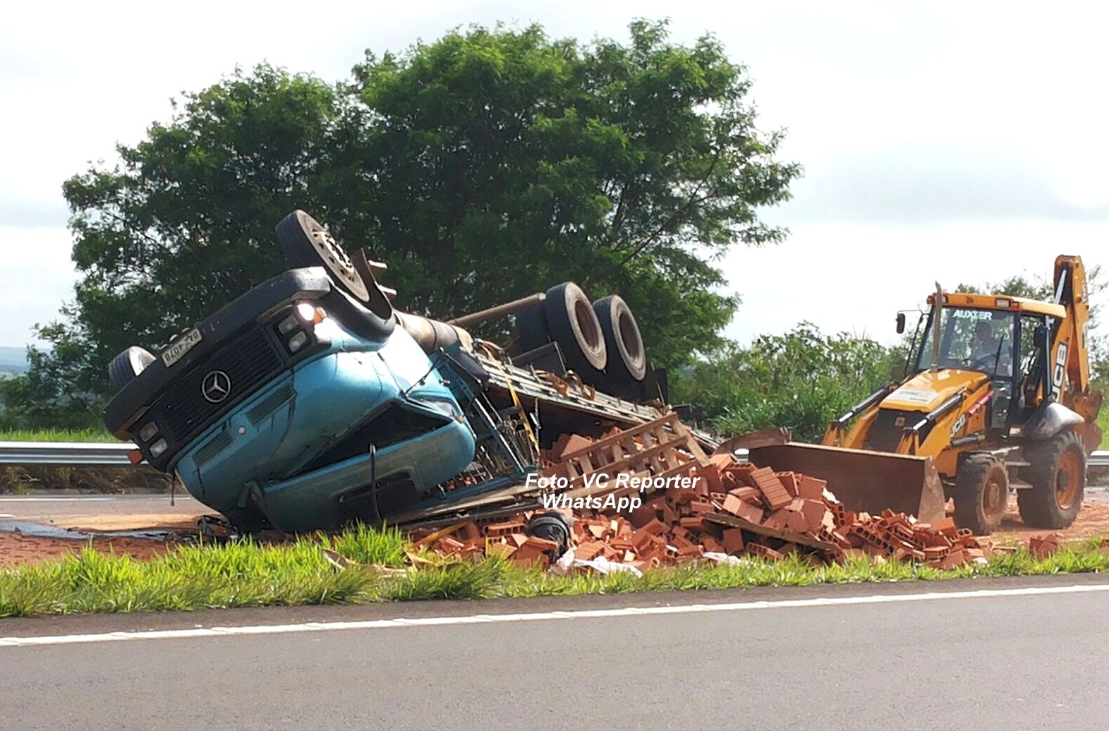 O motorista de umm caminhão carregado com blocos, que seguia no sentido Bauru - Marília, perdeu o controle e o veículo capotou. O motorista e o filho dele sofreram ferimentos e foram socorridos por equipes de resgate do Corpo de Bombeiros de Garça.