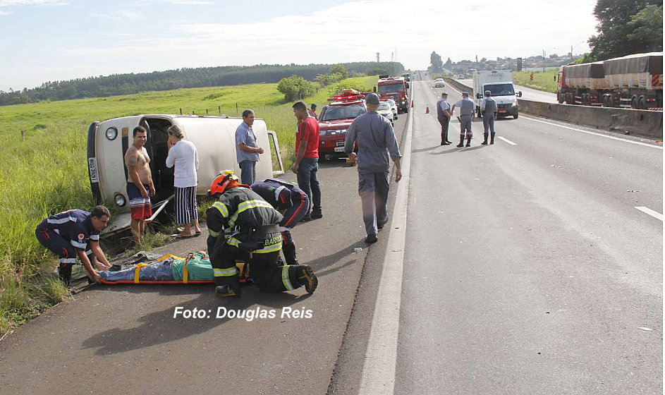 De acordo com a Polícia Rodoviária, com o impacto na traseira, o motorista da Kombi perdeu o controle e o veículo tombou na rodovia. O condutor sofreu graves ferimentos.