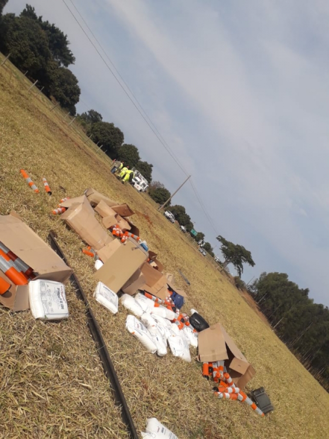De acordo com a Polícia Rodoviária Estadual, com o impacto da batida o motorista do automóvel perdeu o controle e o veículo foi parar além do acostamento. Parte da carga do caminhão ficou espalhada.