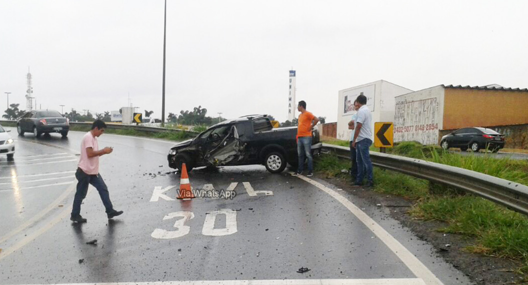 Em uma alça de acesso próximo ao Campus Universitário, uma pickup rotou na pista após colidir na lateral de um caminhão. Apesar dos estragos exatamente na porta onde fica o motorista, ninguém se feriu. Minutos depois, no KM459 da SP-294, uma caminhonete capotou após o motorista perder o controle por conta da pista molhada.