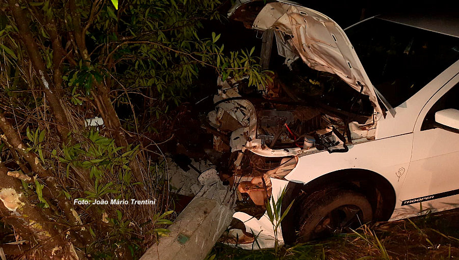Um dos veículos chocou-se violentamente contra um poste
