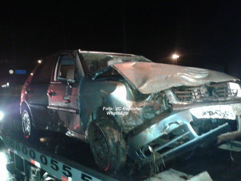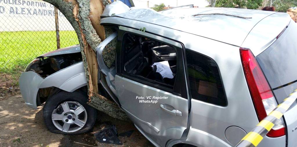 O carro chocou-se violentamente contra uma árvore e ficou com a frente destruída. Apesar dos estragos, o motorista não sofreu ferimentos.