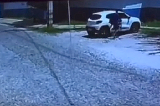 Momento em que os criminosos entram no carro, sequestrando a jovem.