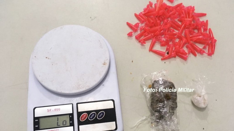 No quarto do menor, os policiais localizaram uma porção de maconha, uma porção de crack, balança de precisão e 63 pinos vazios, que o próprio adolescente confessou enchê-los com crack e vender pela quantia de R$ 10,00 cada. O adolescente infrator foi apresentado na Central de Polícia Judiciária.
