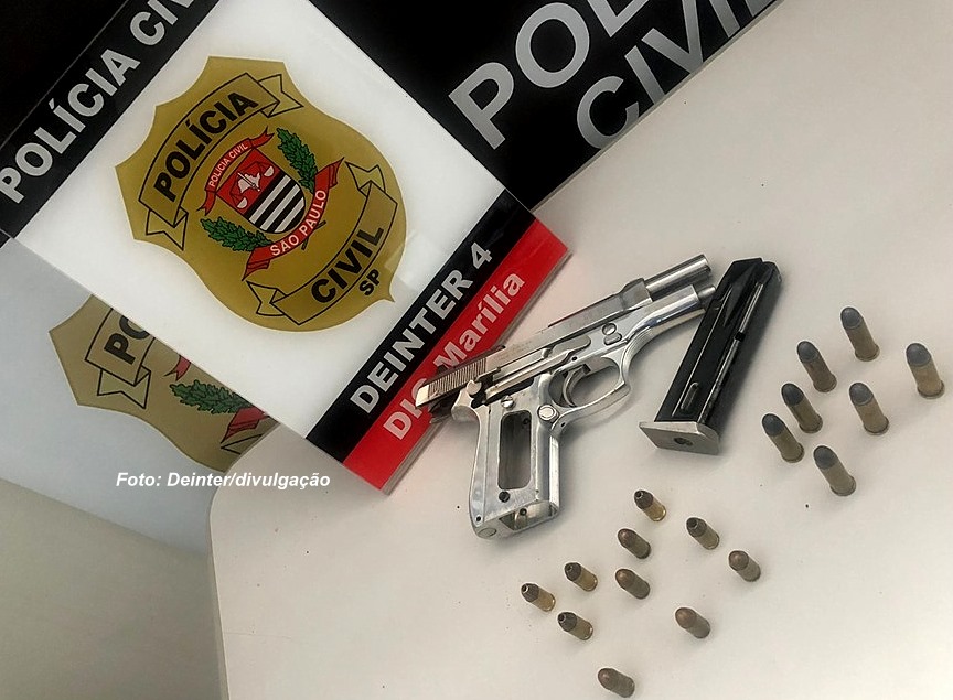 Já as equipes da DIG de Marília, cumpriram de mandado de busca e apreensão e prenderam um homem de 31 anos, que tinha em casa uma pistola Taurus 380, municiado com 10 capsulas íntegras. Foram apreendidos também 07 capsulas integras e um aparelho celular.
