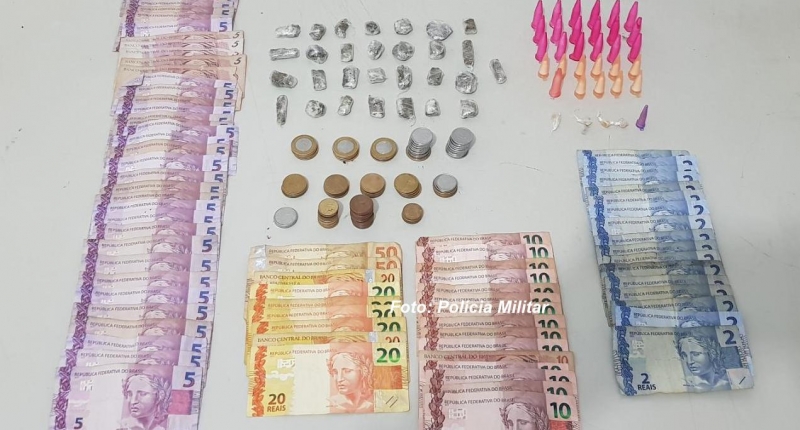 Ele estava com uma sacola plástica contendo 29 pinos de cocaína, cinco pequenas pedras de crack e 29 porções de maconha, além de R$ 652,45.