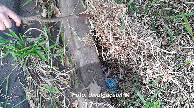 Parte da droga também estava escondida próximo a sarjeta.