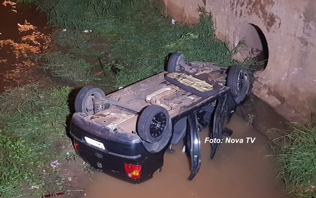 O carro ficou de rodas para cima e a jovem acabou se afogando ao ficar presa nas ferragens.