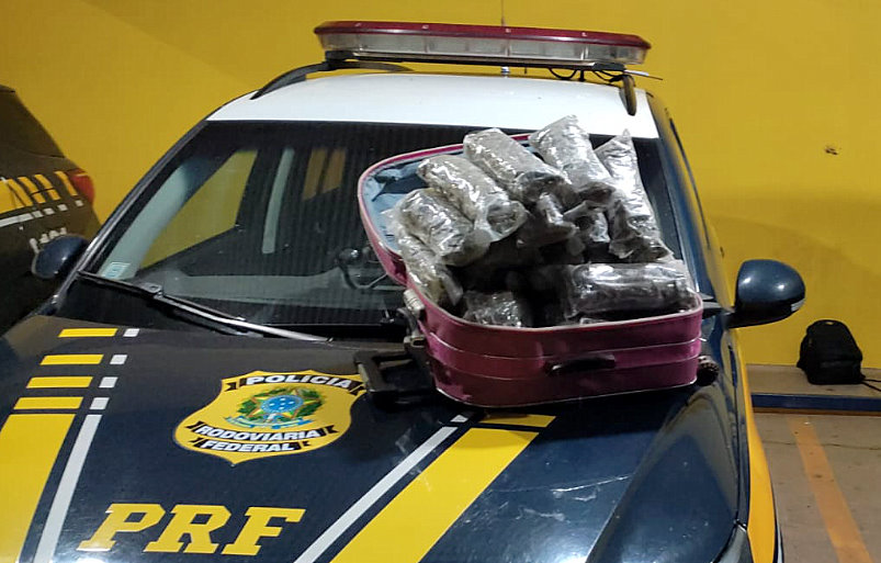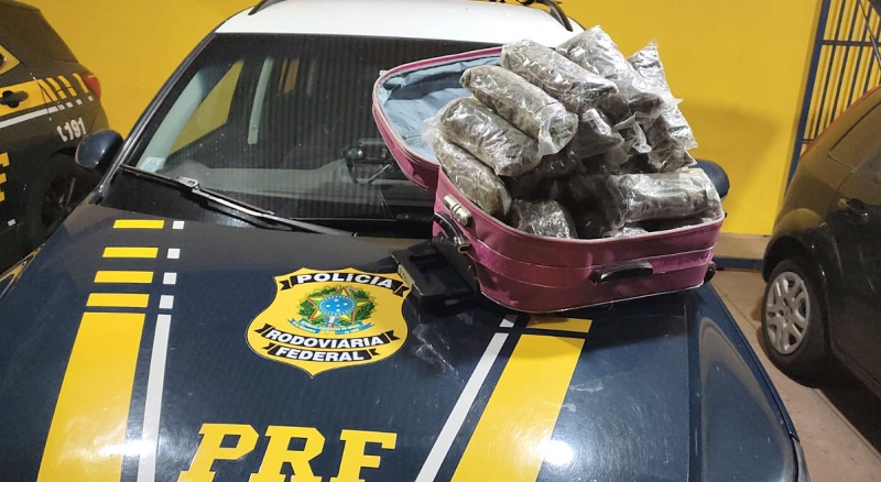 A Polícia Rodoviária Federal apreendeu 35 pacotes pacotes de skank que estavam sendo transportados em um veículo de aplicativo de corridas. Embora o automóvel estivesse ocupado por quatro pessoas, uma adolescente de 17 anos "assumiu" ser a dona da droga e por isso foi apreendida.