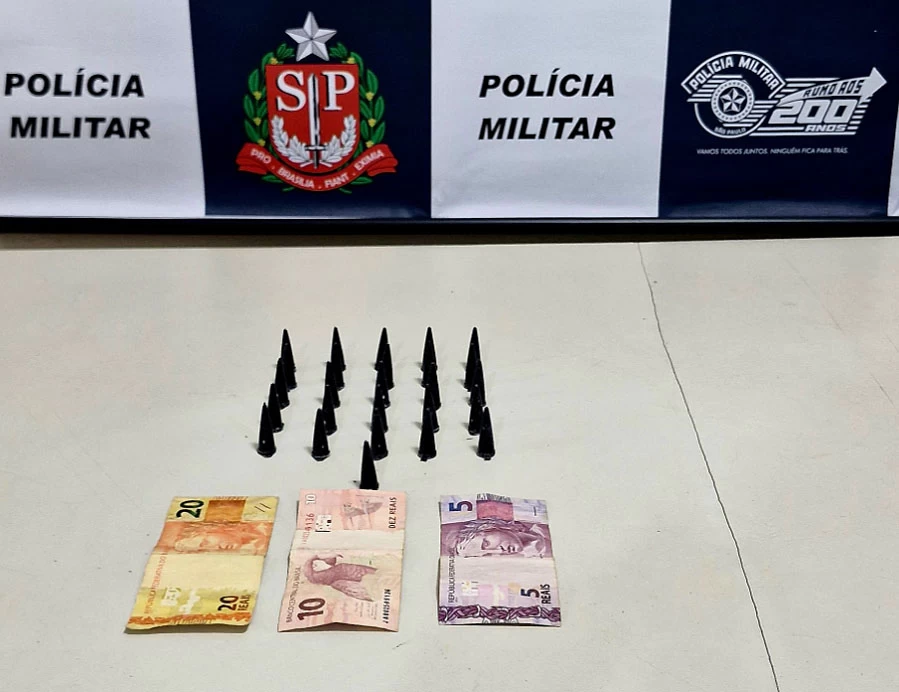 Ao ser revistado, os policiais localizaram uma sacola plástica contendo 26 pinos com cocaína e a quantia de R$ 35,00 em dinheiro. O adolescente confessou estar na prática do tráfico no local.