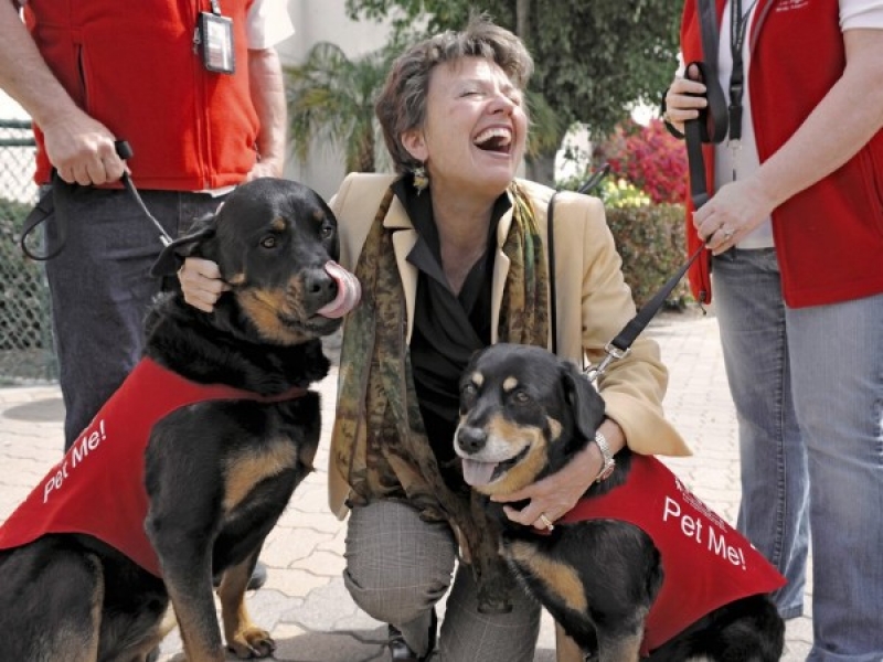 Os cães passeiam acompanhados por seus donos e vestindo coletes com a inscrição “Pet Me” (brinque comigo). Os terminais de Los Angeles, Nova York, São Francisco, São José, Miami e Reno-Tahoe são alguns dos 31 que estão participando da ação. Em alguns desses, inclusive, a pet terapia é oferecida frequentemente para ajudar, principalmente, quem tem fobia de viajar de avião.