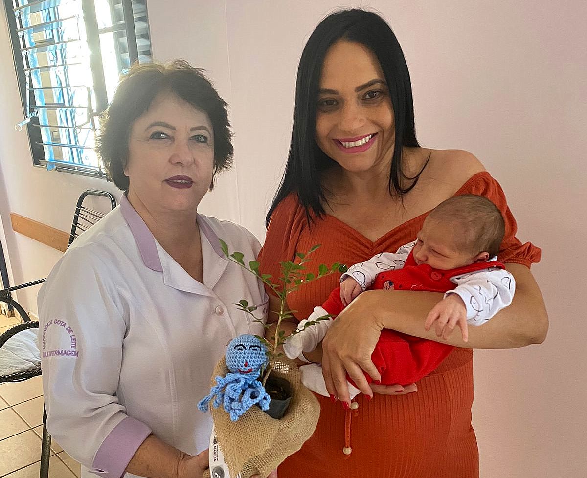 Na Maternidade Gota de Leite estão sendo entregues uma muda de árvore às mamães e toucas amarelas aos bebês, em alusão ao “Agosto Dourado”.