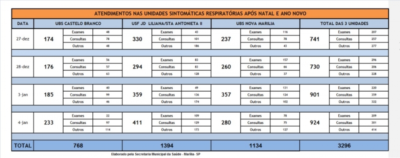 A Secretaria Municipal da Saúde emitiu um alerta sobre uma "explosão" de casos suspeitos de Covis-19 e gripe, após o período de festas de Natal e Ano Novo. Há também em circulação em Marília do vírus Influenza A, com grande potencial de transmissão.