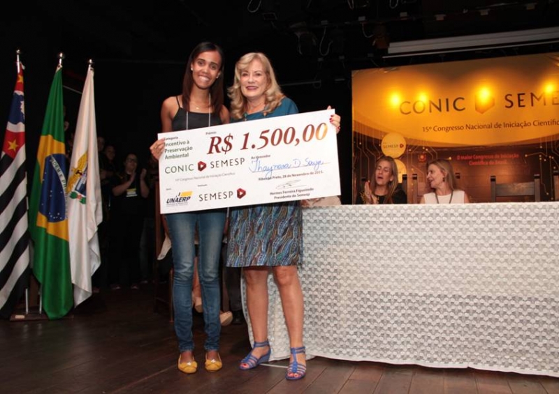 Essa edição contou com mais de 2 mil trabalhos inscritos por alunos de 237 instituições de ensino superior de 21 estados brasileiros. Thaynara recebeu um cheque no valor de R$1.500,00.