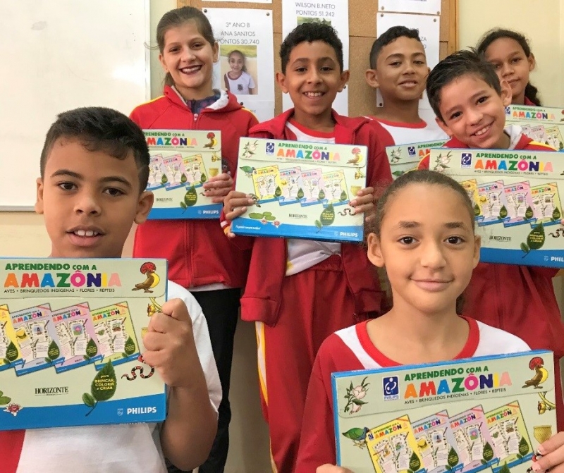 Como prêmio, os alunos levaram um kit “Aprendendo com a Amazônia”, composto por livros educativos para colorir, jogos da memória e mapas, cuja doação fora feita pela empresa “Eh aqui doações”.