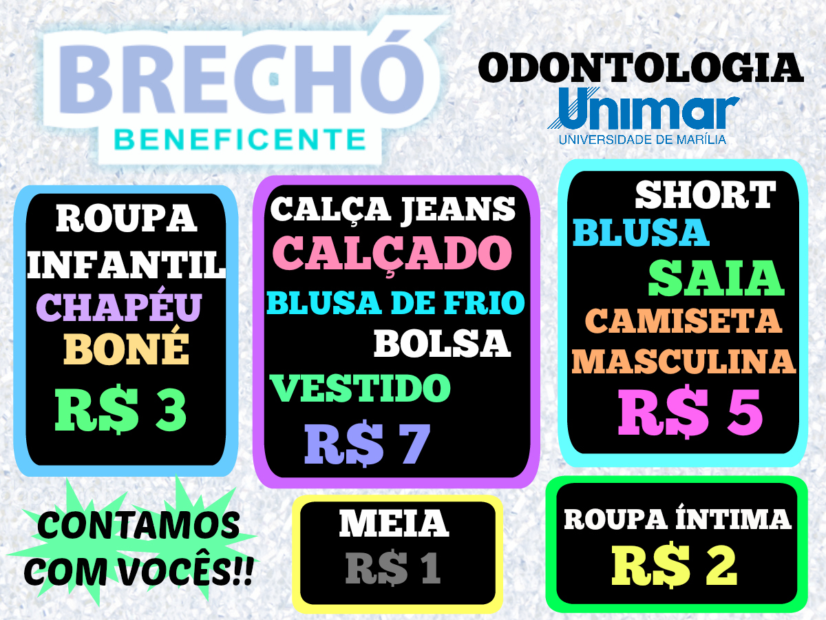 Os alunos do último ano do curso de Odontologia da Unimar (Universidade de Marília) realizam uma ação de solidariedade neste sábado. Será um brechó de roupas e