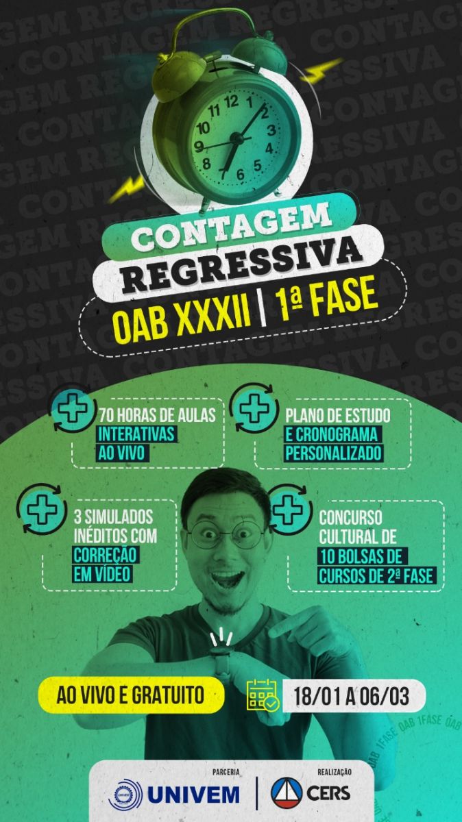 De acordo com o criador do CERS, Prof. Renato Saraiva, a parceria vai beneficiar centenas de estudantes do UNIVEM que vão prestar o Exame de Ordem XXXII, que acontece no dia 07/03.
