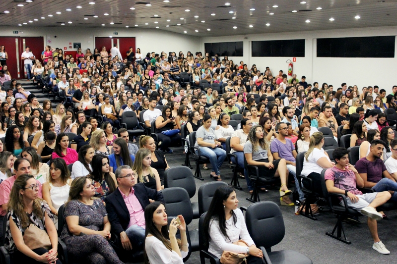 Enfermagem da Universidade de Marília (Unimar). O Anfiteatro da Reitoria ficou tomado com grande presença dos estudantes que acompanharam duas palestras e uma brilhante apresentação do Coral Celv Canta.