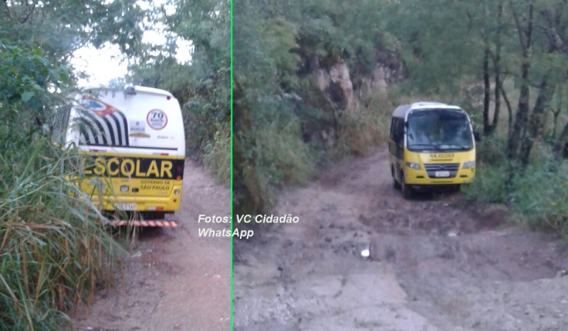 Nesta semana, um internauta do portal Visão Notícias registrou, em vídeo, um flagrante: o motorista de um micro-ônibus da Prefeitura, após deixar os alunos de escolas municipais, tenta subir a serra. O veículo chega a ficar atravessado, mas não conseguiu tração. O perigo foi ainda maior quando uma das rodas chegou a ficar para fora da estrada, pendurada no vale.