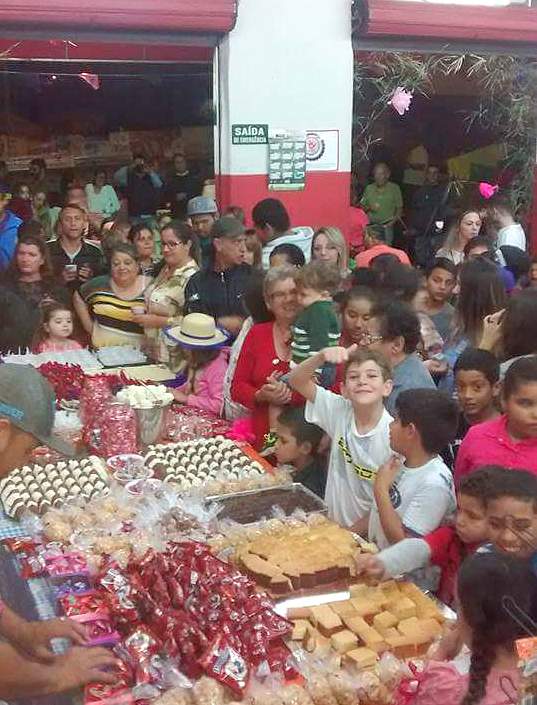 crianças além de adultos em frente ao bar, com a distribuição de comidas típicas (de graça), refrigerante, algodão doce além de brinquedos. A organização e arrecadação de verbas para a realização da festa foi de responsabilidade do Roger Caetano da Rocha, proprietário do bar Coroados e amigos de lojas da rua Coronel Galdino.