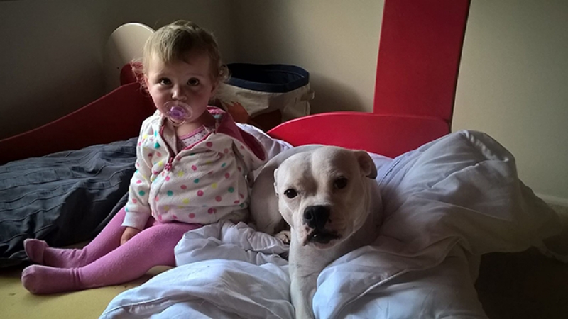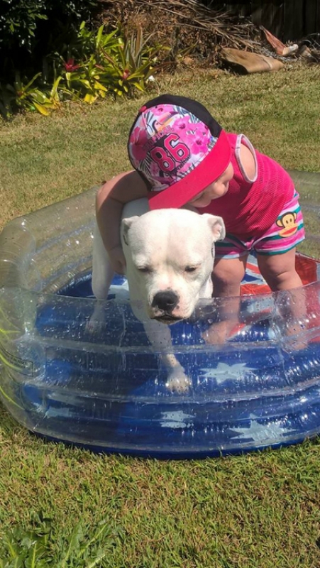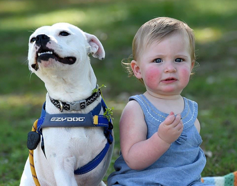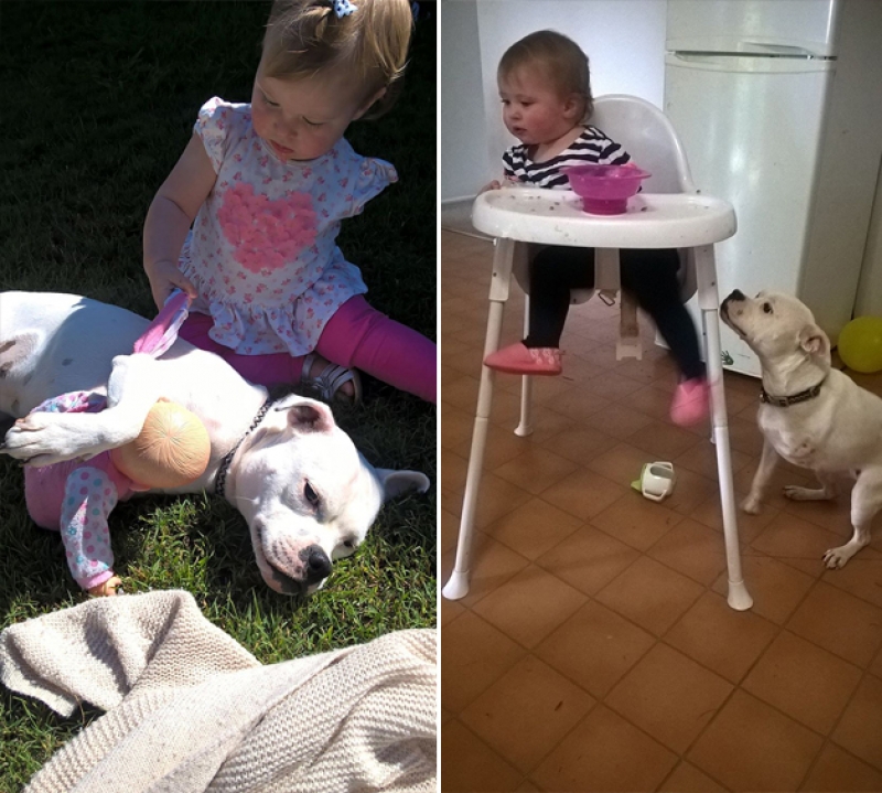 Assim que a australiana Brooke Hodgson, 21, viu na internet o anúncio de adoção de uma cadelinha sem uma das pernas dianteiras, ela não pensou duas vezes em adotá-la para sua filhota, Ella, de 1 ano e que nasceu com um braço apenas.