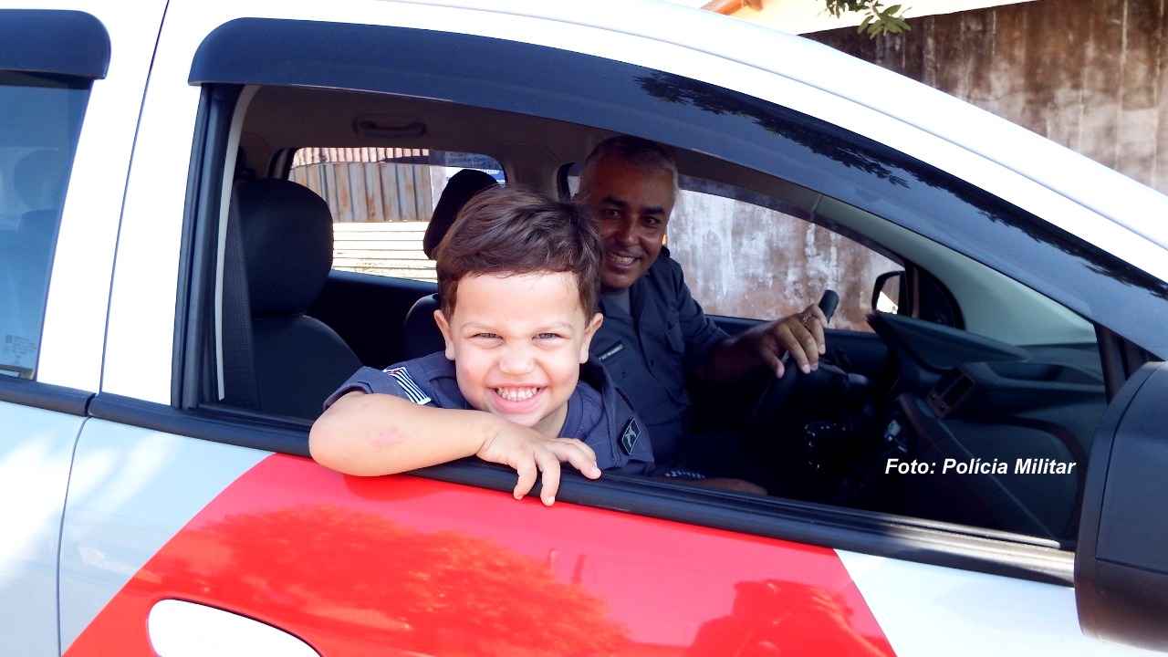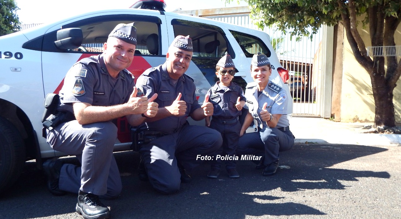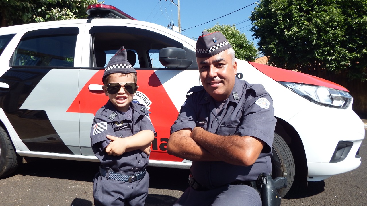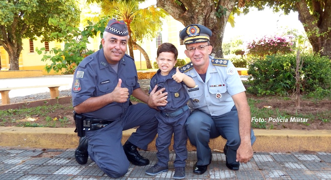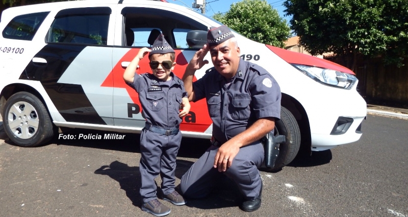 Tudo começou com o pequeno Valentim que há mais de um ano admira os policiais e ganhou uma farda de presente em seu aniversário. Agora, vai mobilizar mais crianças de Oscar Bressane.