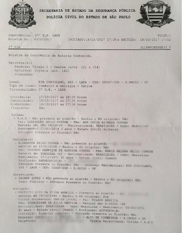 Ela postou uma foto do Boletim de Ocorrência registrado contra a internauta que atacou o filho. “A justiça EXISTE SIM e vamos fazer uso dela. ACABOU! Chega de pessoas acharem que podem fazer tudo e saírem ilesas!”, escreveu a apresentadora.