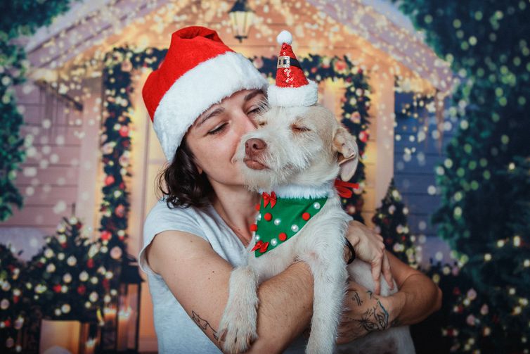 As festividades de fim de ano inspiraram a equipe da Fazenda Abrigo de Fauna a fotografar animais de estimação disponíveis para adoção com tema natalino.