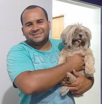 Thiago ao reencontrar a sua cachorrinha "Mel".
