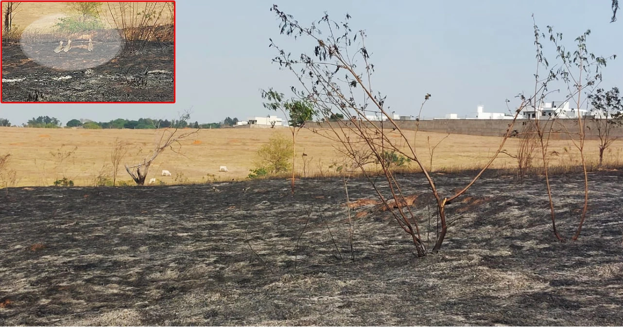 Na manhã desta terça-feira, aves da espécie "quero-quero" vasculhavam um pasto cheio de cinzas atrás dos filhotes ao lado do bairro Villa Flora, entre as regiões norte e oeste. Mas, tudo indica que foram mortos pelo fogo que havia atingido a área na noite anterior.