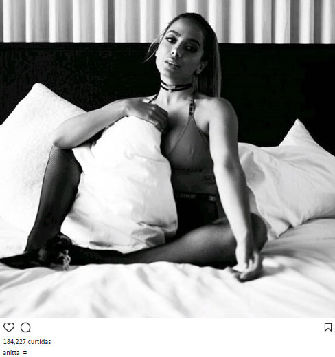 Anitta tirou o fôlego de seus seguidores no Instagram. A cantora compartilhou fotos de um ensaio sensual, em que aparece na cama, usando um top e uma meia-arrastão.