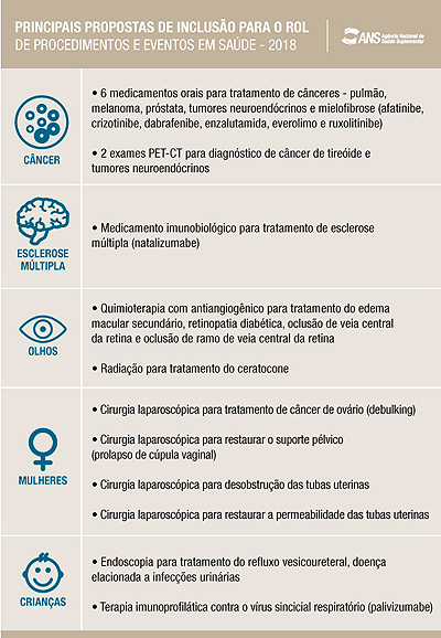A revisão do Rol de Procedimentos e Eventos em Saúde faz parte de um processo contínuo e periódico realizado pela ANS. Os procedimentos são atualizados para garantir o acesso ao diagnóstico, ao tratamento e ao acompanhamento das doenças por meio de técnicas que possibilitem o melhor resultado em saúde, sempre obedecendo a critérios científicos de segurança e eficiência comprovados.