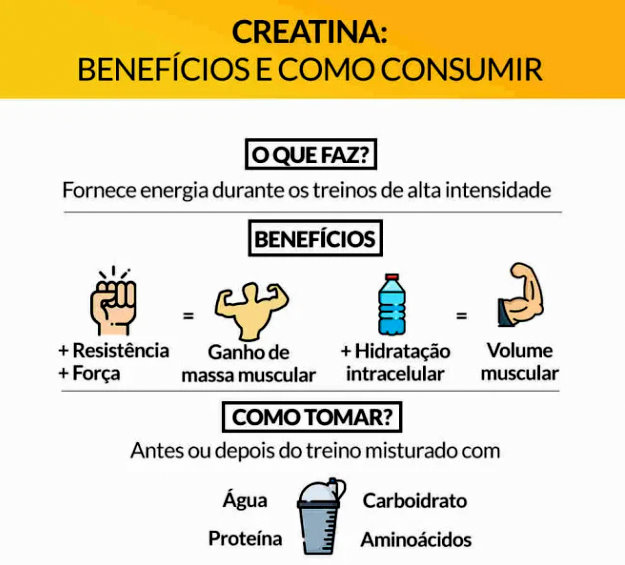 A creatina serve para aumentar a produção de energia nos músculos, melhorando o desempenho físico, especialmente em atividades de alta intensidade e curta duração.