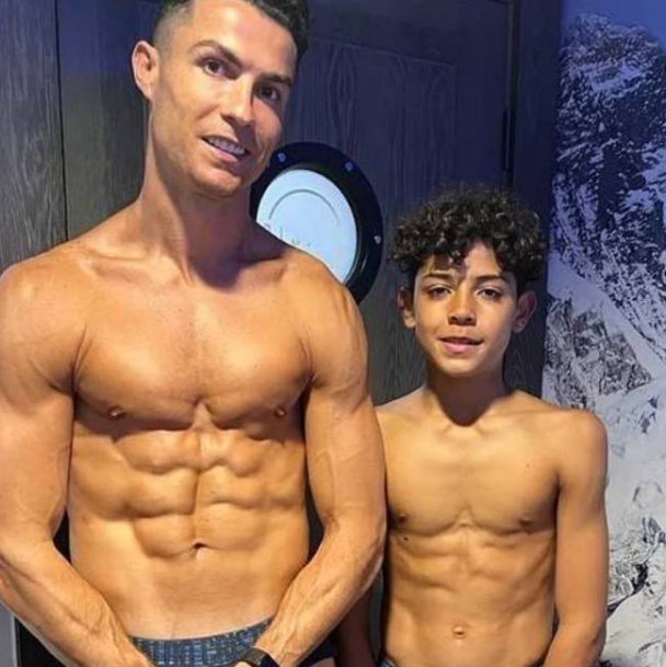 Uma simples foto da craque Cristiano Ronaldo ao lado do filho mais velho, Cristiano Jr., de 11 anos, deixou os internautas impressionados. O motivo: o físico sarado da criança, que chega a ser comparado com a musculatura do pai, atleta, mesmo sendo tão novinho.
