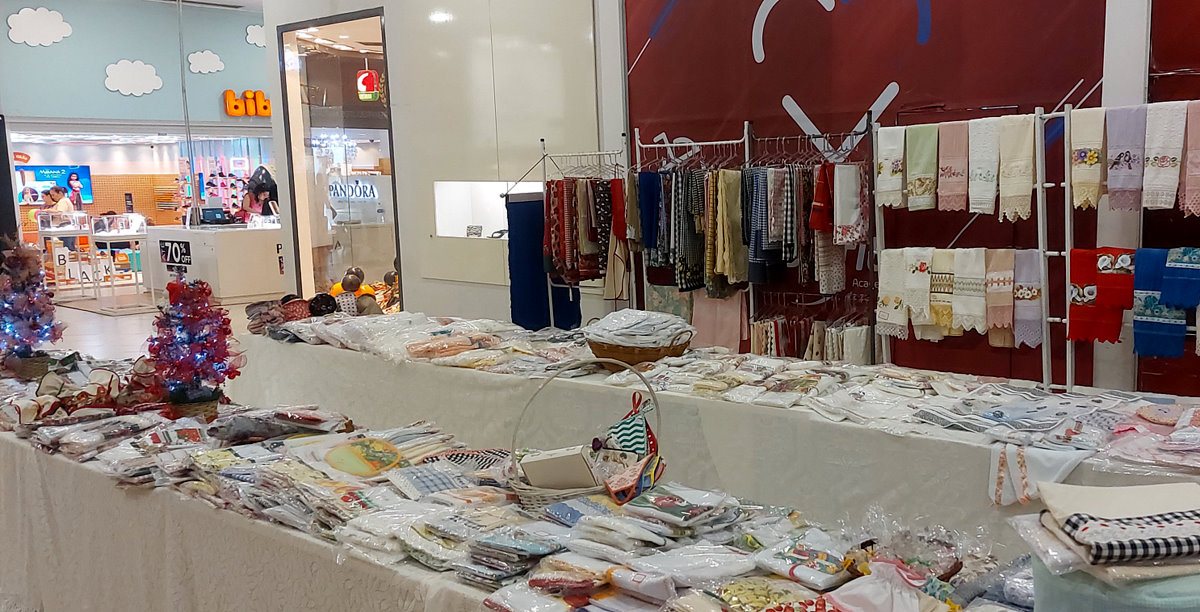 Entre os produtos disponíveis estão trabalhos feitos em ponto cruz, crochê, patchwork em toalhas, panos de pratos e toalhas. Haverá também uma variedade de artigos com temas natalinos, como panos de pratos decorados, jogos de cozinha, peças de crochê, entre outras opções.
