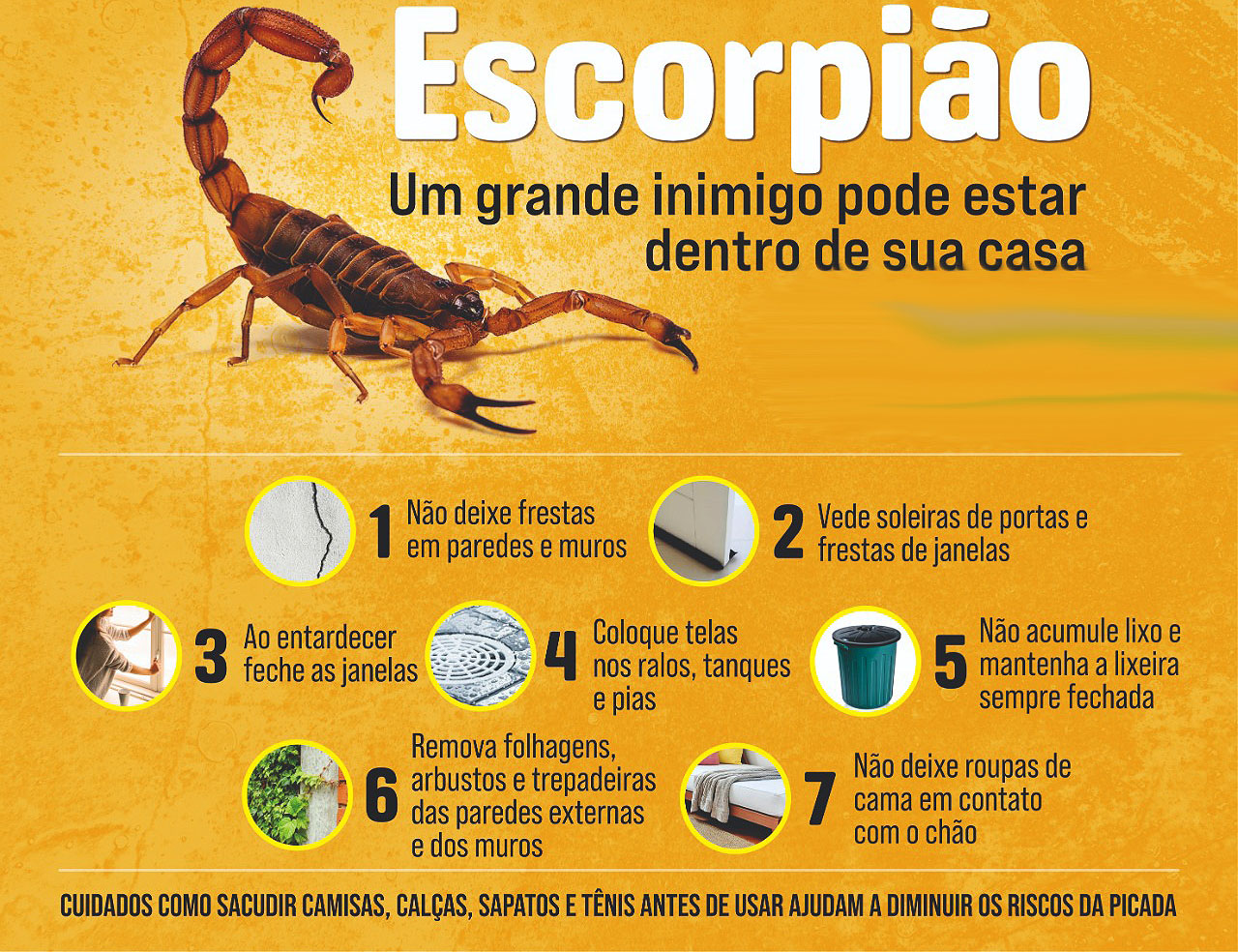 Os escorpiões se alimentam de baratas, então costumam frequentar locais sujos. Uma das espécies mais preocupantes é a do escorpião-amarelo. Quando uma pessoa é picada por um deles, a dor é imediata em quase todos os casos.