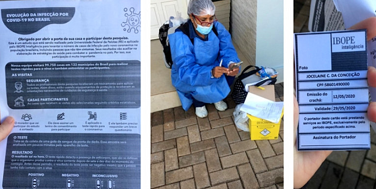 Marília está participando de uma pesquisa do Centro de Pesquisas Epidemiológicas da Universidade Federal de Pelotas que está medindo a prevalência do coronavírus e avaliar a velocidade de expansão da doença no país, com financiamento do Ministério da Saúde do Brasil, mas ainda há dúvidas se essas duas pessoas seriam integrantes da equipe.